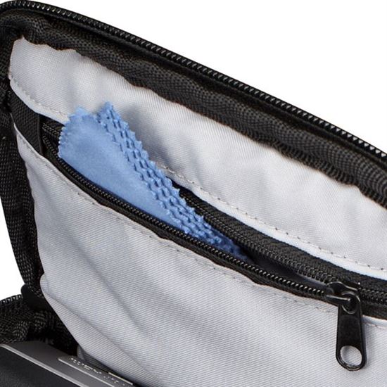 - Vnútorné vrecko na zips s parkovaním pre pamäťovú kartu, utierku na optiku a iné drobné príslušenstvo