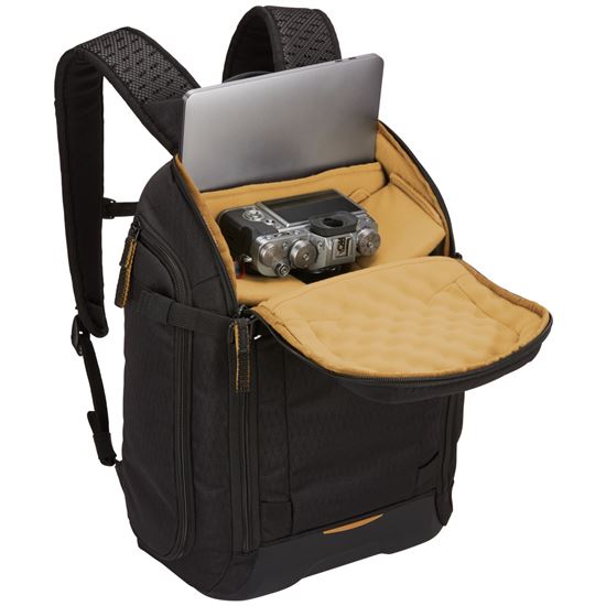 - Horné vstupné veko so zvlnenou pamäťovou penou zvyšuje úroveň ochrany hlavného fotoaparátu.