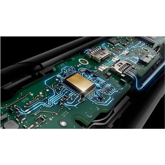 Trinásť lopatková turbína sa otáča rýchlosťou až 106 000 otáčok za minútu čím generuje vzduchový prúd 11,9 litra za sekundu. To vytvára tlak vzduchu až 3,6 kPa, ktorý je dostatočne silný na to, aby vyrovnával vlasy pri ich sušení. - Inteligentná regulácia teploty