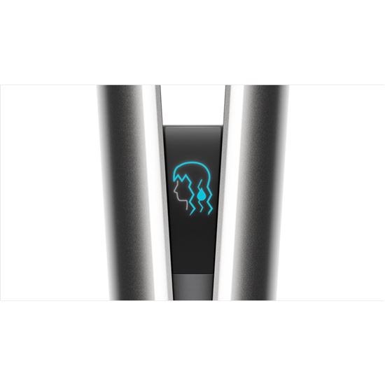 Žehlička sama rozpozná, kedy sa vlasy nachádzajú medzi ramenami, a ak medzi ramenami nie sú, automaticky zníži úroveň prúdenia vzduchu - pre tichší a energeticky úspornejší styling. - LCD displej
