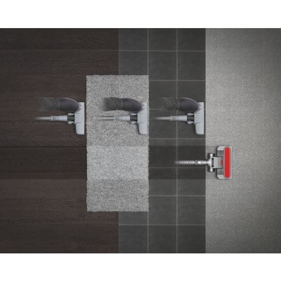 Sama se automaticky nastaví pro optimální utěsnění na každém typu podlahy. Není potřeba ji měnit ani přepínat při přechodu z jednoho typu podlahy na jiný.