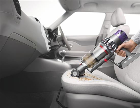 Motor, odpadová nádoba a cyklóny sú usporiadané v jednej priamke, takže vzduch je hnaný do cyklón po priamej línii čo vytvára o 20 % väčší sací výkon ako u vysávača Dyson V8™.