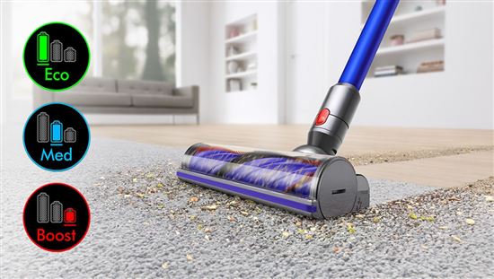 Efektívne upratovanie s výkonným vysávačom Dyson. Trvale vysoký výkon akumulátora a hygienický systém vyprázdňovania zbernej nádoby. Výkon systému sa meria a je zobrazovaný v reálnom čase na LCD displeji pre ešte lepší prehľad o upratovaní.