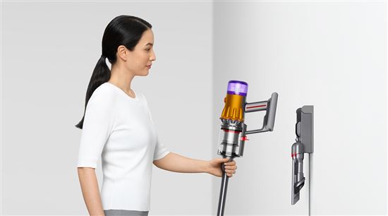 Vysávač Dyson V12 Detet Slim™ zavesíte do nástenné nabíjacej stanice, takže je vždy pripravený pre ďalšie upratovanie.