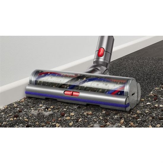 V automatickom režime monitoruje technológia Dyson DLS™ (Dynamic Load Sensor) 360x za sekundu odpor rotačnej kefy vnútri podlahovej hubice Digital Motorbar™ a automaticky upravuje výkon podľa typu podlahy. - Hubica s kónickou kefou. Zberá dlhé vlasy aj chlpy domácich miláčikov.