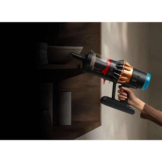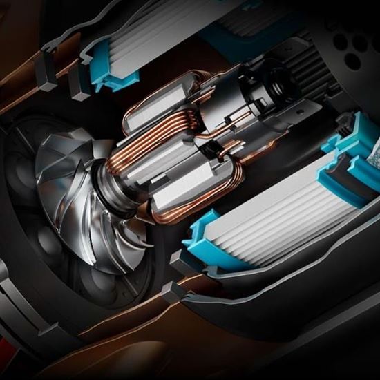Dyson Hyperdymium™ 900 W motor. Výkonnejší a pritom menší motor s vyššou účinnosťou a prepracovaným difúzorom s reverzným prúdením, ktorý vytvára sací výkon 315 AW. - Dynamické cyklóny