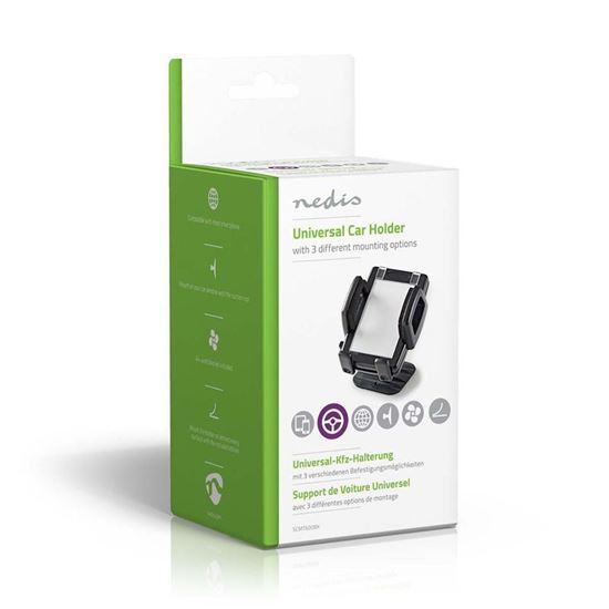 S týmto 3-v-1 univerzálnym držiakom do automobilu spoľahlivo upevníte vaše PDA, mobilný telefón alebo MP3 prehrávač. Upevňuje sa prísavkou na sklo, špeciálnou svorkou na vetraciu mriežku alebo nálepkou na palubnú dosku. Držiak umožňuje vloženie fotografie.