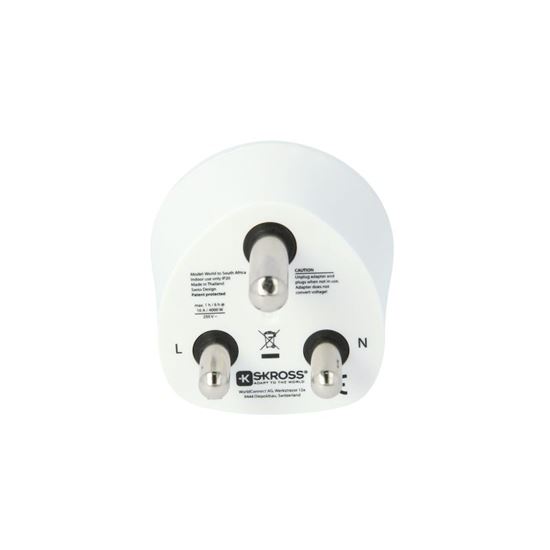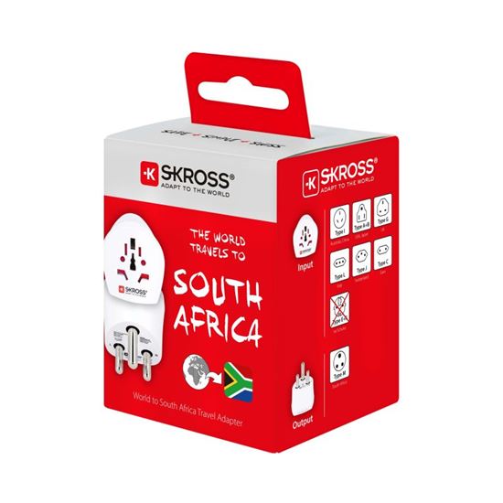 Adaptér SKROSS World to South Africa umožňuje bezpečné použitie zariadenia v zásuvkách Južnej Afriky a krajinách s podobným štandardom zásuviek. Cestovateľom zo Slovenska pripoja iba neuzemnené vidlice prívodných káblov, napr. telefónov, tabletov, holiacich strojčekov a nositeľnej elektroniky. Vďaka univerzálnej zásuvke je možné pripojiť prívodné káble aj z iných krajín, uzemnené aj neuzemnené.