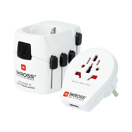 Najvýkonnejší uzemnený adaptér SKROSS PRO - World & USB umožňuje bezpečné pripojenie európskych zariadení vo viac ako 120 krajinách. Vďaka prídavnému nástavcu pre prívodné šnúry z rôznych regiónov rozširuje svoju použiteľnosť až na 205 destinácií. Podporuje dvojpólové aj trojpólové zástrčky a vďaka maximálnej záťaži 7 A zvládne aj náročnejšie spotrebiče, ako sú notebooky alebo cestovné fény.