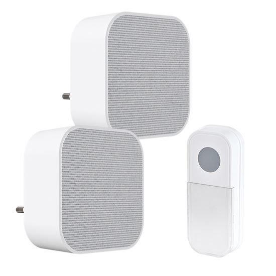 Táto sada bezdrôtových zvončekov je spoľahlivé a cenovo dostupné riešenie pre byty, domy alebo menšie prevádzky. Oba prijímače sú spárované s tlačidlom a zvyšujú pokrytie signálom, napr. jeden na prízemí a druhý na poschodí domu, či vo vzdialenejšej miestnosti. Dosah až 180 metrov v otvorenom priestore zaisťuje spoľahlivú funkciu aj pri väčších vzdialenostiach. Tlačidlo je napájané batériou a ľahko sa inštaluje na dvere či stenu.