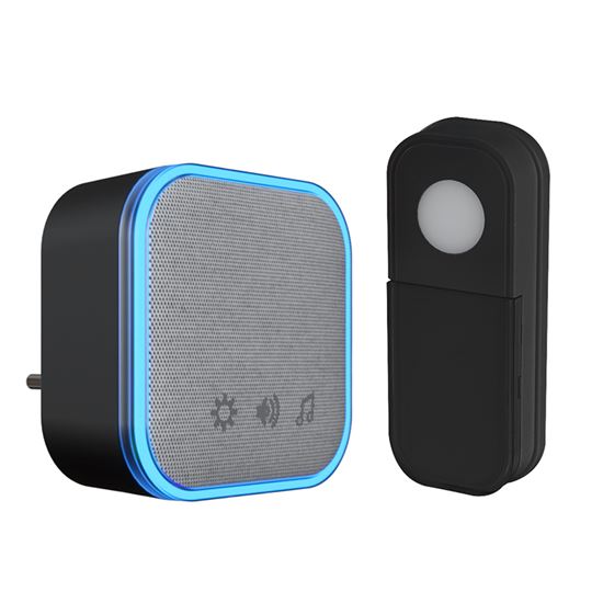 Zvonček ponúka výber z 36 melódií a 4 úrovní hlasitosti. Ovládacie tlačidlá sú umiestnené priamo na prednej strane pod látkovým dekorom – to výrazne uľahčuje prístup a zjednodušuje nastavenie funkcií bez nutnosti otáčať alebo odpájať zariadenie. Pri zazvonení sa rozsvieti veľký svetlo modrý LED rámček, ktorý zaisťuje dobre viditeľnú svetelnú signalizáciu. Ideálne aj do hlučnejších priestorov alebo pre osoby so zhoršeným sluchom.