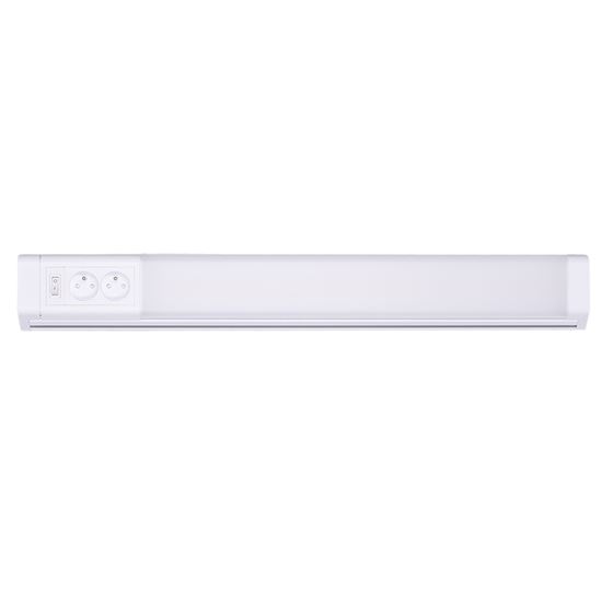 LED rohové lineárne svietidlo s integrovanou dvojitou zásuvkou je ideálnym riešením pre kuchynské skrinky a pracovné dosky. Poskytuje príjemné neutrálne biele svetlo (4100 K) s výkonom 10 W a svetelným tokom 850 lm. Široký 170° uhol svietenia a vysoký CRI >80 zaručujú rovnomerné a kvalitné osvetlenie. Vďaka manuálnemu spínaču a pripojeniu cez vnútornú svorkovnicu je inštalácia rýchla a jednoduchá. Krytie IP20 a životnosť 30 000 hodín zaručujú spoľahlivú prevádzku. Vyrobené z odolného hliníka, v bielom vyhotovení. Rozmery: 501 x 80 x 85 mm. Energetická trieda G.