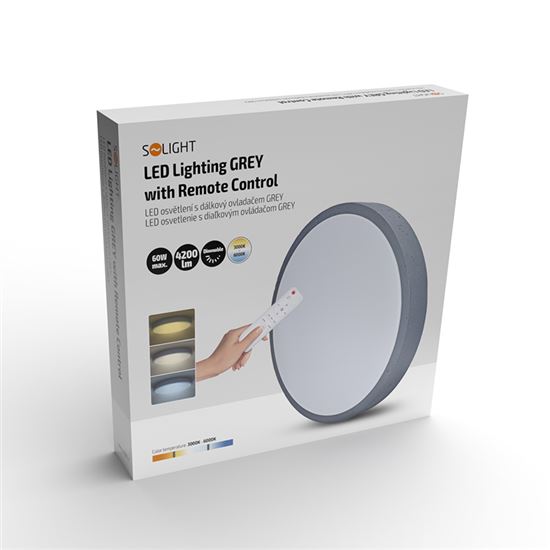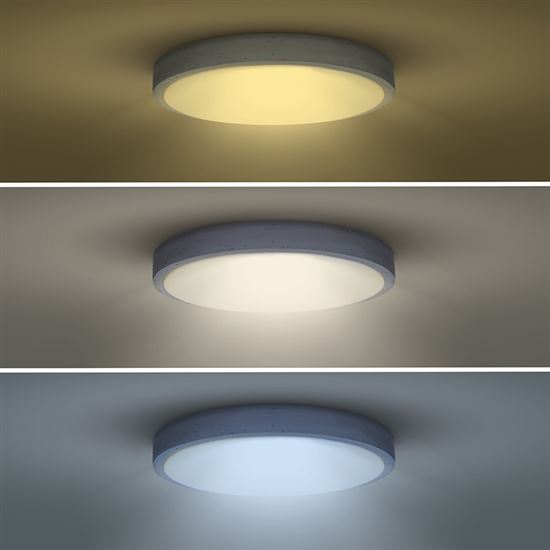 Veľkoformátové stmievateľné LED svietidlo Grey s príkonom až 60 W a svetelným tokom 4200 lm (pre 4000K) zaujme nielen svojím výkonom, ale aj dizajnom v imitácii sivého betónu. Ponúka možnosť zmeny teploty chromatickosti (3000K-6500K) a plynulé stmievanie pomocou priloženého diaľkového ovládania. Vďaka širokému uhlu osvetlenia 120° poskytuje rovnomerné a intenzívne osvetlenie veľkých priestorov.