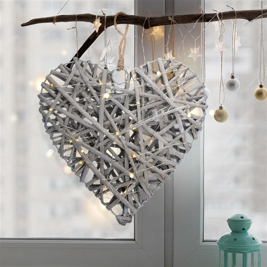 Solight LED ratanové srdce, 30x LED, 2x AA, 30cm