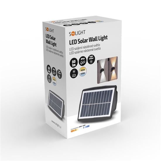 - LED vonkajšie solárne nástenné osvetlenie s možnosťou nastavenia teplej a studenej bielej farby svetla