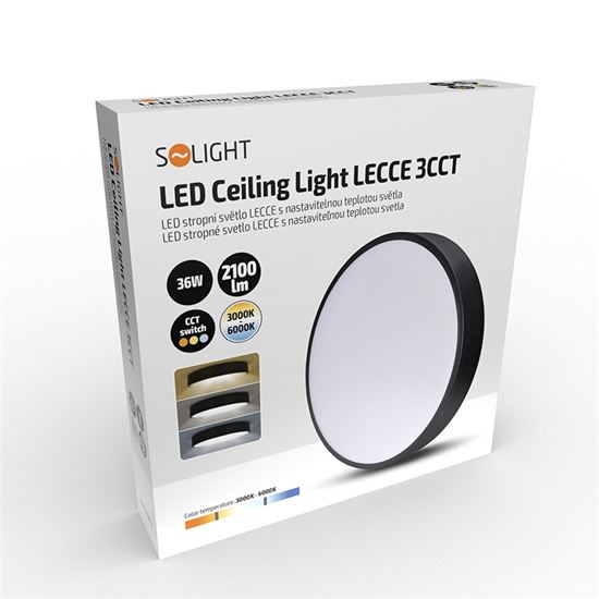 Moderné stropné LED svietidlo s maximálnym výkonom 36 W ponúka výnimočnú funkčnosť a variabilitu vďaka integrovanému prepínaču teploty svetla. Užívateľ si môže zvoliť medzi teplým (3000 K), neutrálnym (4000 K) a studeným bielym svetlom (6000 K) podľa aktuálnej potreby či atmosféry v miestnosti. Vďaka vysokému svetelnému toku až 2100 lm (pri 3000 K) a širokému vyžarovaciemu uhlu 120° je svietidlo ideálnou voľbou pre efektívne osvetlenie obytných aj komerčných priestorov.