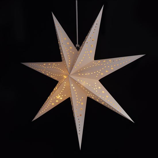 Papierová hviezda s integrovanou LED reťazou je pôsobivá dekorácia, ktorá zaujme na prvý pohľad. Vďaka svojim rozmerom 60 × 60 cm slúži ako dominantný slávnostný prvok v oknách, na stene alebo zavesená v miestnosti. Vo vnútri hviezdy sa nachádza 20 LED diód s teplým bielym svetlom, ktoré krásne osvetľujú papierový materiál a vytvárajú útulnú atmosféru.