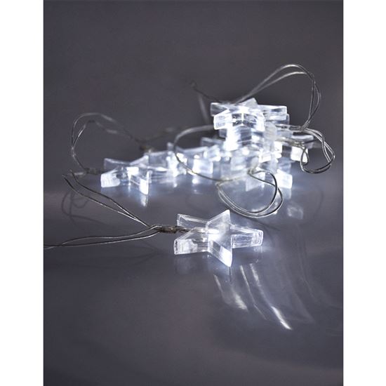 Táto elegantná LED reťaz s motívom hviezdy a bielym svetlom je dokonalým doplnkom vašich vianočných dekorácií. Reťaz je vybavená 10 diódami LED, ktoré rovnomerne osvetľujú priestor mäkkým, jasným svetlom. Priehľadný kábel s dĺžkou 1,5 metra a prívodným káblom s dĺžkou 1 meter neruší dizajn a pôsobí veľmi decentne.