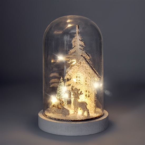 Táto roztomilá LED dekorácia zachytáva zasneženú zimnú krajinu s malebným domčekom a okamžite navodí tú správnu vianočnú atmosféru. Vďaka kompaktným rozmerom 18 × 11,5 × 11,5 cm sa hodí na poličku, parapet alebo slávnostný stôl. Desať integrovaných LED diód s teplým bielym svetlom jemne osvetľuje detailné prvky dekorácie a vytvára útulné svetelné pozadie.