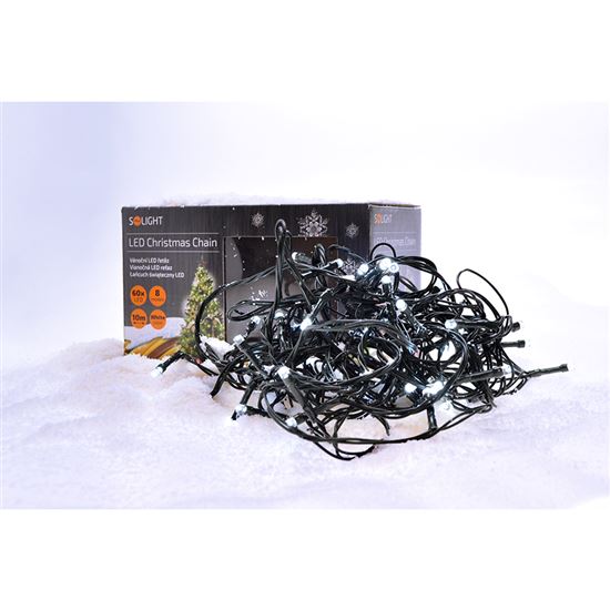 Reťaz má osem svetelných režimov a je prispôsobená na vonkajšie aj vnútorné použitie. Dlhá životnosť LED diód a nízka spotreba energie zabezpečujú spoľahlivú prevádzku a hospodárnu prevádzku. Moderný dizajn v kombinácii s čisto bielym svetlom je vhodný pre minimalistické a luxusné dekorácie.