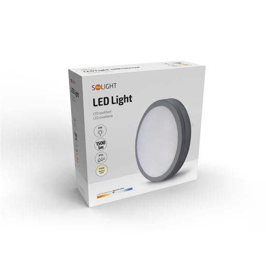 Svietidlo má rozmery 230 × 230 × 73 mm a je dostupné v elegantnej sivej farbe, ktorá sa ľahko kombinuje s exteriérmi a modernými interiérmi. Uhol osvetlenia 120° umožňuje rovnomerné šírenie svetla po celej ploche. Vďaka životnosti LED čipov až 30 000 hodín a indexu podania farieb Ra >80 zaručuje verné podanie farieb a dlhodobú spoľahlivú prevádzku. Energetická trieda G a bezúdržbová prevádzka robia z tohto svietidla praktické riešenie na každodenné použitie.