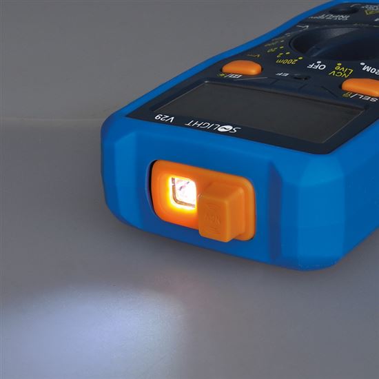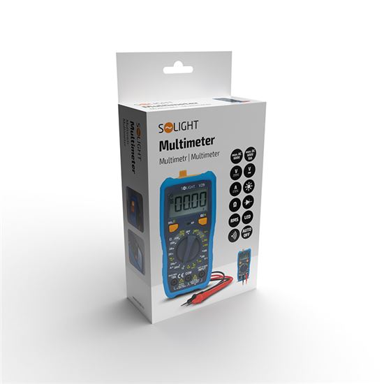 Digitálny multimeter na meranie striedavého/jednosmerného napätia, jednosmerného prúdu, odporu a skutočnej efektívnej hodnoty (RMS hodnota striedavých priebehov). Ponúka test tranzistorov a diód, test spojitosti obvodov, detektor bezkontaktného napätia (NCV) a tester vodičov pod napätím (LIVE). Funkcia HOLD na uloženie nameranej hodnoty a LED svietidlo na lepšiu viditeľnosť. Ochrana proti preťaženiu s poistkami 10 A/600 V a 500 mA/600 V. Napájanie: 2x batérie AAA (sú súčasťou dodávky). rozmery: 154x75x35 mm, hmotnosť: 182 g.