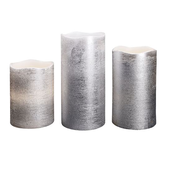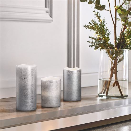 - sada LED sviečok s prirodzene blikajúcim plameňom a dekorom vo striebornej farbe