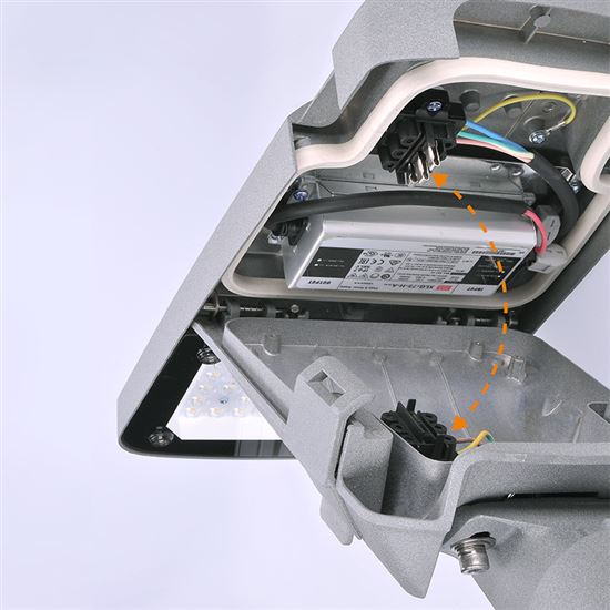 bezpečnostná poistka: po otvorení krytu dôjde k prerušeniu prívodu el. energie do svetla