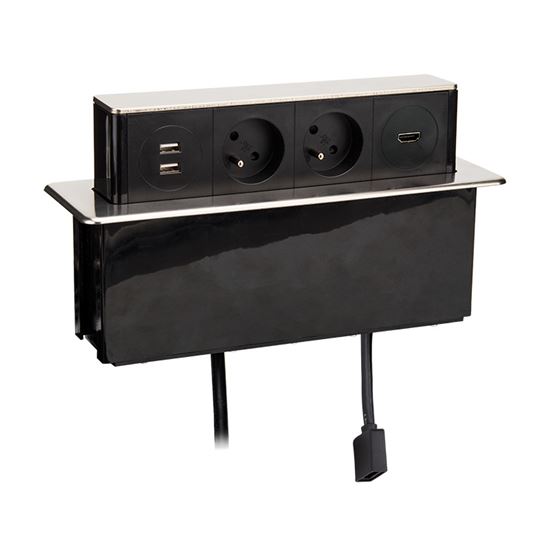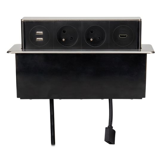 Solight USB výsuvný blok zásuviek, 2 zásuvky + HDMI + USB, nerez + plast, 3 x 1.5mm2, strieborný