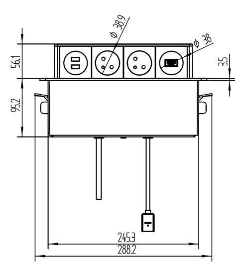 rozmer montážneho otvoru v doske stola: max. 25,0 x 6,5cm