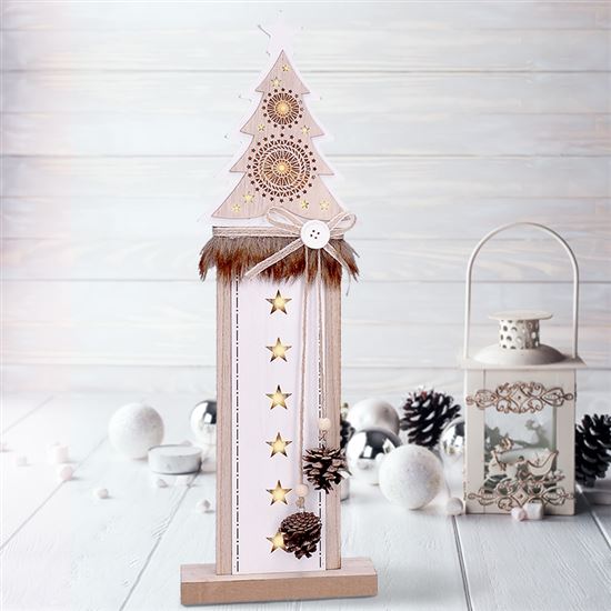 Solight vianočná LED drevená dekorácia, stromček, 2x AA