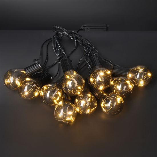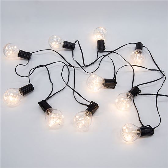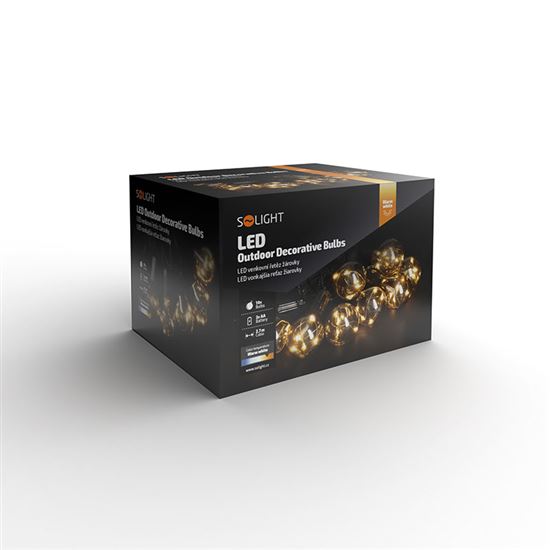Elegantná vonkajšia dekoratívna reťaz so žiarovkami LED vytvára štýlové osvetlenie pre záhrady, terasy alebo altánky. Reťaz obsahuje 10 žiaroviek a celkovo 50 LED diód s teplým bielym svetlom, ktoré v kombinácii so vzhľadom klasických žiaroviek vytvárajú útulnú atmosféru. Vďaka dĺžke svietiacej časti 2,7 m a napájaciemu káblu 0,5 m možno dekoráciu ľahko umiestniť podľa potreby.