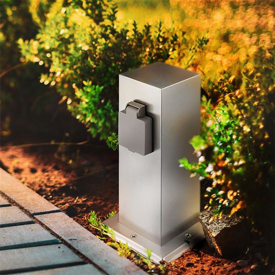 Dve zásuvky s detskými poistkami sú chránené samouzatvárateľnými krytkami, ktoré bránia vniknutiu vlhkosti a nečistôt. Vďaka krytiu IP44 je stĺpik vhodný aj na použitie za dažďa alebo vo vlhšom prostredí. Zásuvky zvládnu záťaž až 3680 W (16 A pri 230V~), čo je ideálne pre vonkajšie osvetlenie, záhradnú techniku aj bežné spotrebiče. Vhodný pre domy, pergoly aj firemné areály.