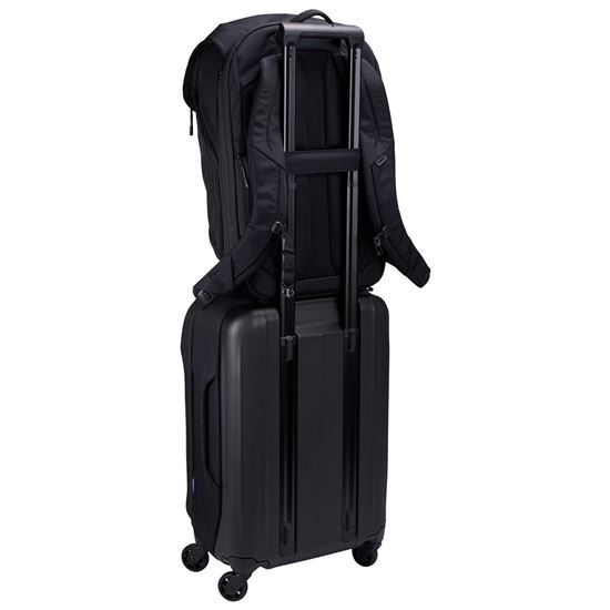 - Pripevnenia k batožine na kolieskach: Prechádzajúci popruh pre batožinu umožňuje pripevniť batoh k batožine na kolieskach pre pohodlné cestovanie.