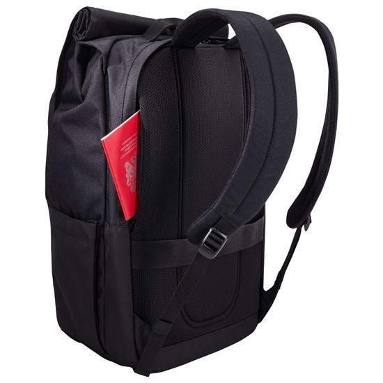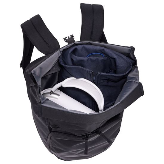 • Štýlový rolovací design zväčšuje kapacitu batohu z 28 na 33 litrov.