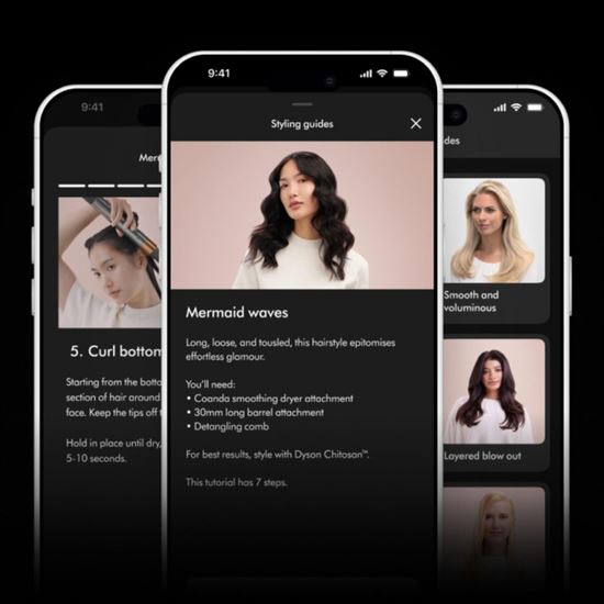 Aplikácia MyDyson™ vám na základe vášho osobného profilu vlasov môže ponúknuť inšpiráciu pre nový vzhľad alebo profesionálne tipy pre styling.