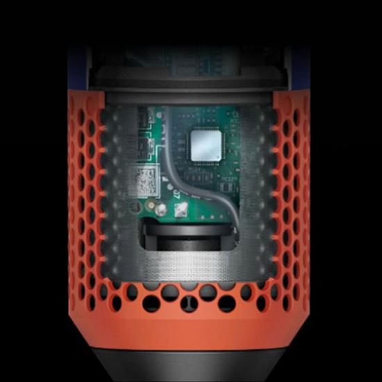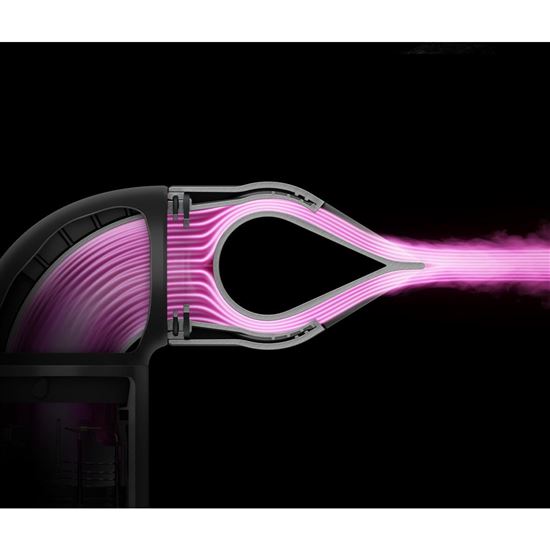 V srdci prístroja sa nachádza výkonný digitálne riadený motor Dyson, ktorý sa otáča rýchlosťou až 110 000 otáčok za minútu. Táto mimoriadna rýchlosť vytvára silný prúd vzduchu a dostatočný tlak na to, aby mohol vzniknúť Coanda efekt – prirodzené priľnutie vlasov k povrchu nástavca bez potreby extrémneho tepla.