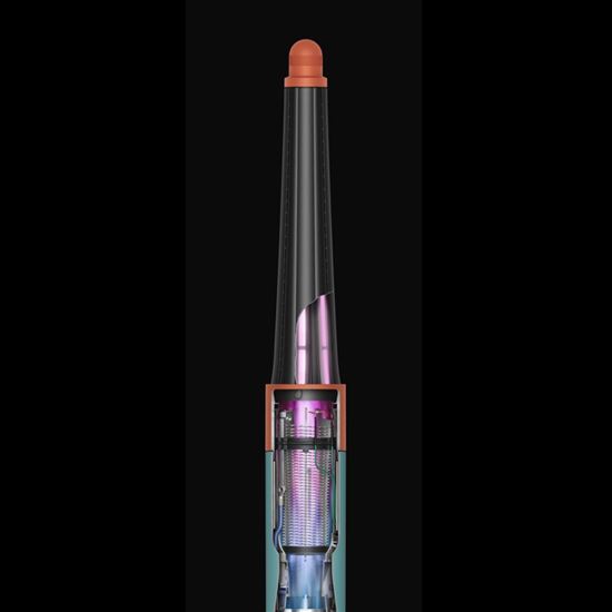 Kužeľovito tvarovaný nástavec bol navrhnutý tak, aby prúd vzduchu plynule kopíroval jeho tvar a vďaka Coanda efektu sa k nemu vlasy prirodzene prichytávali. Tým sa výrazne uľahčuje tvarovanie kučier aj ich definícia – a to vrátane úpravy priamo pri korienkoch, kde je bežne manipulácia najnáročnejšia.