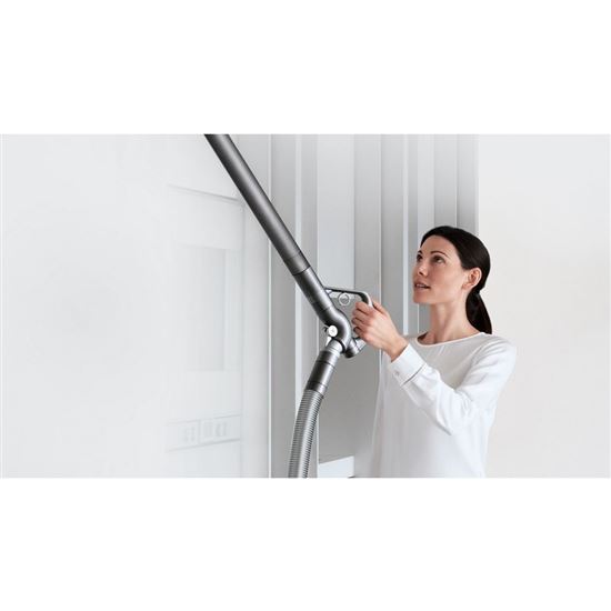 Dyson Big Ball Absolute 2 je navrhnutý tak, aby si poradil aj s upratovaním tam, kam sa bežné vysávače dostávajú len ťažko. Teleskopická sacia trubica s maximálnou dĺžkou až 125 cm umožňuje pohodlne vysávať vo výškach, napríklad na skriniach, policiach alebo pri strope.