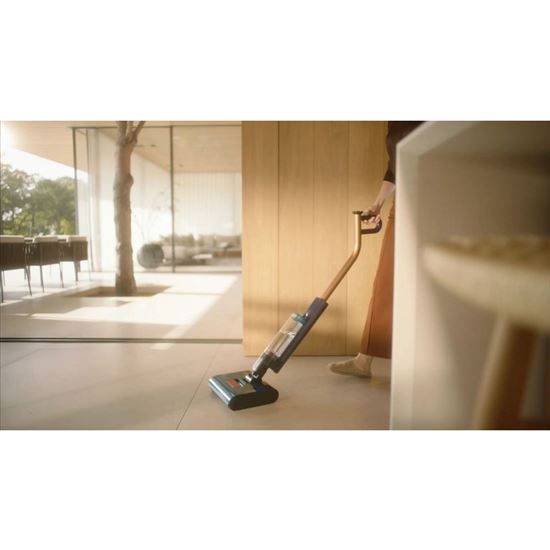 Navrhnutý tak, aby nečistoty zostávali v podlahovej hubici a nedostávali sa do vrchných častí podlahovej umývačky. Žiadne zanášanie kalom ani znečistené vnútorné vedenie, ktoré by bolo potrebné čistiť.