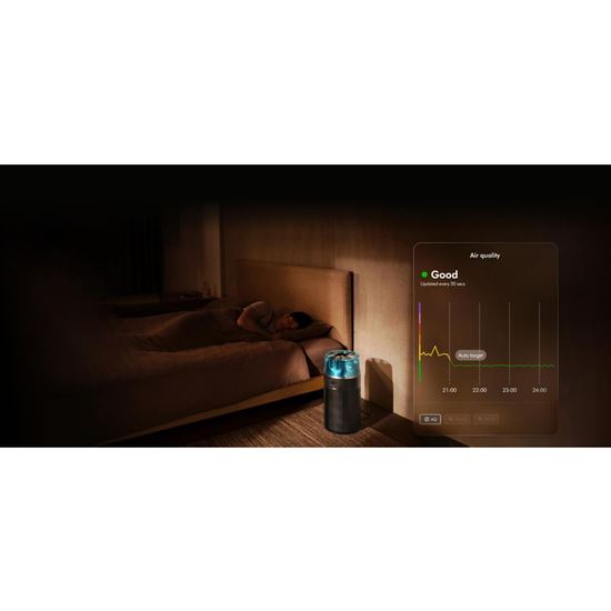 Tichý chod aj pri plnom výkone – iba 41 dB v maximálnom režime čistenia. Režim spánku pracuje pri hlučnosti len 26 dB a podporuje pokojný spánok.