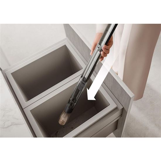 Pokročilý mechanizmus vysypávania zbernej komory bol navrhnutý tak, aby minimalizoval vznik prachových mračien a zabezpečil čo najčistejšiu manipuláciu. Pri otvorení sa stlačený prach a nečistoty vytlačia hlboko do odpadkového koša, takže sa k vám jemné častice ani nepriblížia. Tento systém zaručuje ešte hygienickejšie vysypávanie, ktoré je rýchle, jednoduché a bez zbytočného kontaktu s nečistotami.