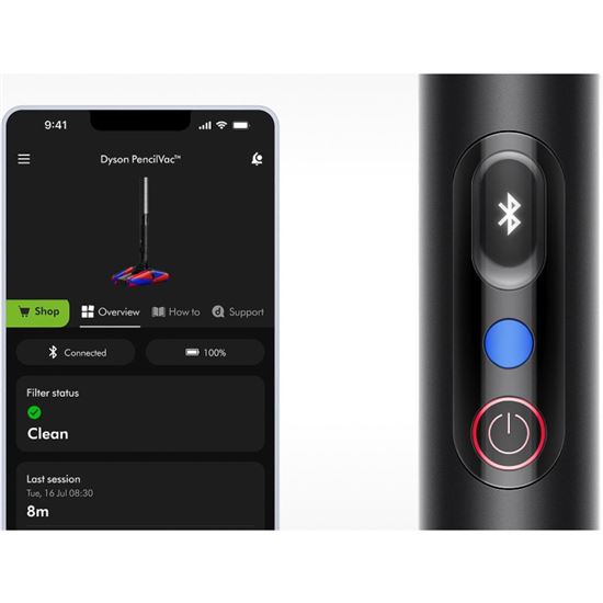 Vysávač je možné jednoducho prepojiť s aplikáciou MyDyson™, ktorá ponúka prehľadné ovládanie a ďalšie možnosti nastavenia. V aplikácii získate odporúčania k údržbe, upozornenia na servisné úkony, praktické návody a tipy pre čo najefektívnejšie používanie.