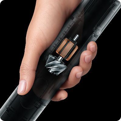 Dyson PencilVac FluffyCones je vybavený najpokročilejším motorom. Dosahuje neuveriteľnú rýchlosť až 140 000 otáčok za minútu, čo zabezpečuje okamžitý nábeh výkonu a konštantnú saciu silu. Vďaka extrémne kompaktnému prevedeniu sa celý motor zmestí do štíhlej 38mm rukoväte, ktorá perfektne padne do ruky a poskytuje výnimočnú kontrolu pri manipulácii. Výsledkom je ľahšie, rýchlejšie a ergonomickejšie upratovanie – bez kompromisov na výkone. Dyson PencilVac FluffyCones vám umožní upratovať s precíznosťou, ktorú ucítite v každom pohybe.
