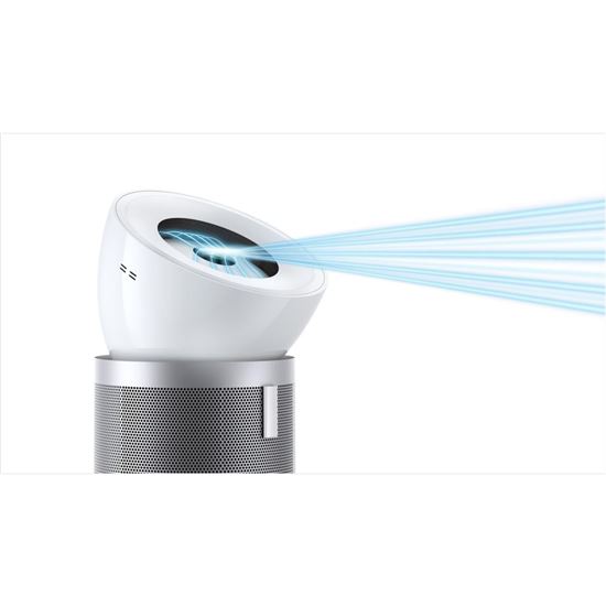 Čistička vzduchu Dyson využíva takzvanú kužeľovú aerodynamiku k distribúcii silného prúdu vzduchu s ďalekým dosahom. To vytvára potrebnú cirkuláciu vzduchu, ktorá odvádza i vzdialené škodliviny a zachytáva ich do uzavretých filtrov. Dokonca aj vo väčších miestnostiach čistí Dyson BP02 vzduch v celej miestnosti.