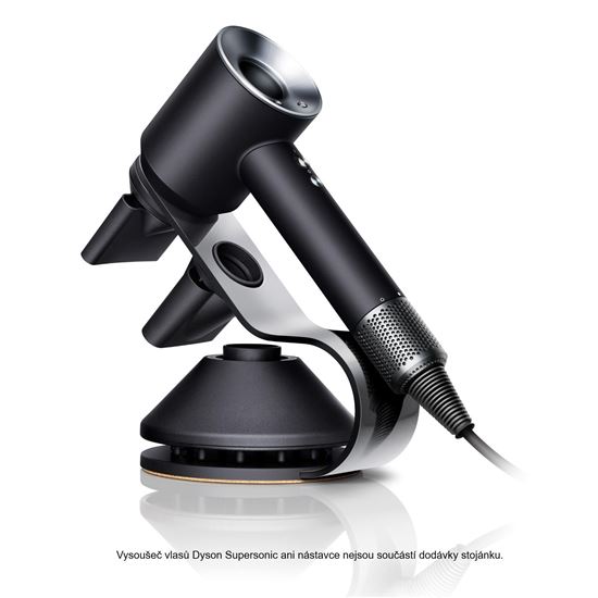 Navrhnutý na praktické ukladanie vysúšača vlasov a Dyson Supersonic™ a až troch magnetických nástavcov. Iba stojanček. Vysúšač vlasov Dyson Supersonic™ ani magnetické nástavce na vyobrazení nie sú súčasťou dodávky stojančeka.