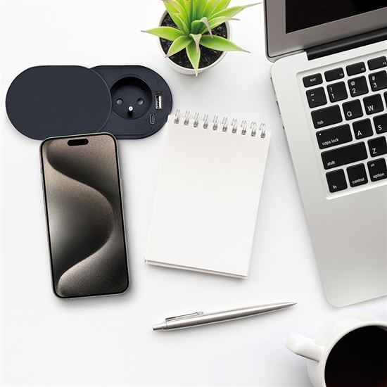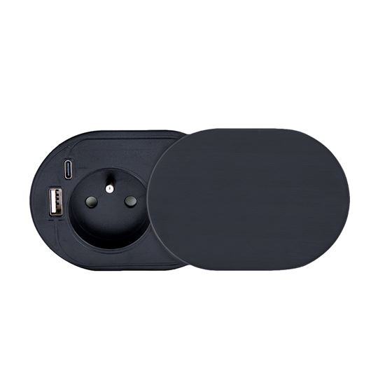 Posuvné viečko v matnom čiernom prevedení pôsobí elegantne a nenápadne. Posuvný mechanizmus chráni zásuvku aj nabíjacie porty pred prachom a nečistotami. Navyše je možné odhaliť len USB porty a sieťovú zásuvku ponechať zakrytú. Zakryté viečko zachováva čistý vzhľad pracovnej plochy.