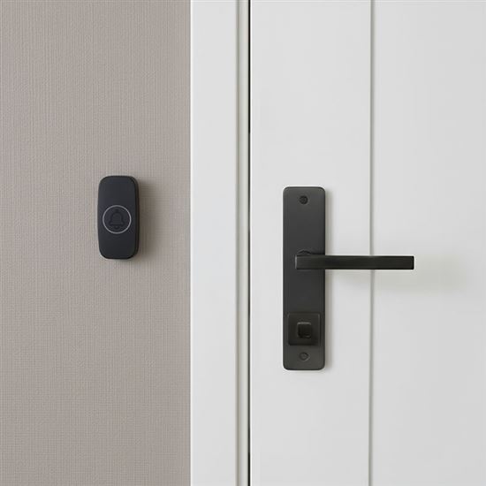Čistý dizajn s praktickými detailmi Matné čierne s čistými líniami a zaoblenými hranami pôsobí elegantne a nenápadne. Ovládacie tlačidlá zvončeka sú ľahko prístupné a iba na jednej strane. Tlačidlo je odolné proti vode a prachu (IP56) a je možné ho ľahko upevniť pomocou samolepiacej podložky alebo skrutiek.