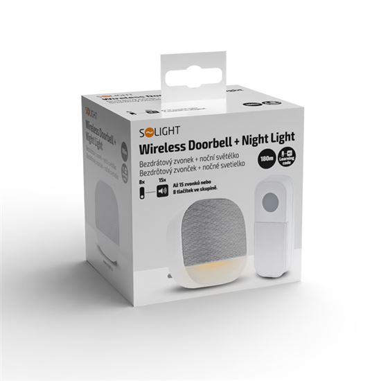 Solight bezdrôtový zvonček s nočným svetielkom, do zásuvky, 180m, biely, learning code | SOLIGHT