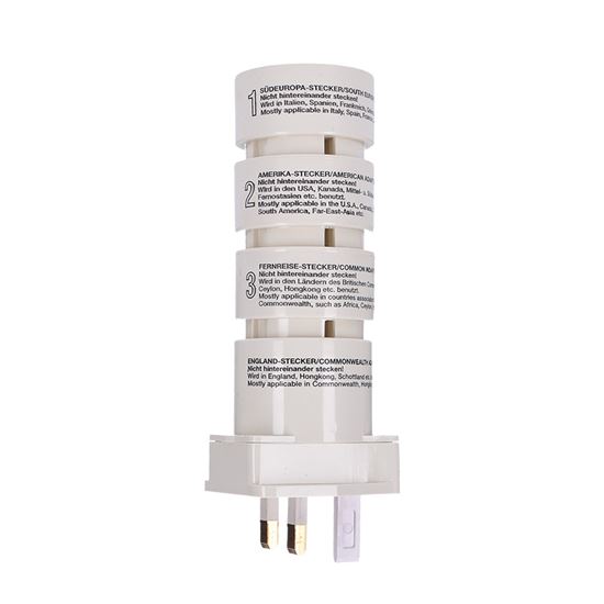 Sada cestovných adaptérov Adaptéry bez uzemnenia umožňujú pripojenie slovenských a európskych zariadení vo svete. Prepoja dvojpólové neuzemnené káble spotrebičov s európskymi, britskými, americkými, japonskými a ďalšími zásuvkami. Dokonale sa hodí pre všetky neuzemnené elektrické zariadenia, ako sú fotoaparáty, holiace strojčeky a nabíjačky telefónov.